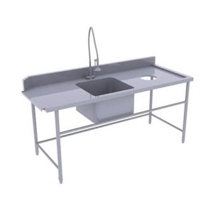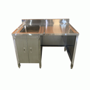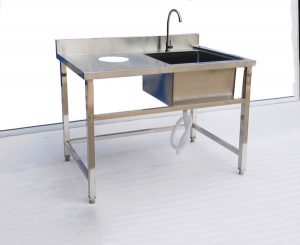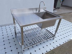 Chậu rửa inox đơn có bàn lệch phải và giá nan dưới cho xí nghiệp
